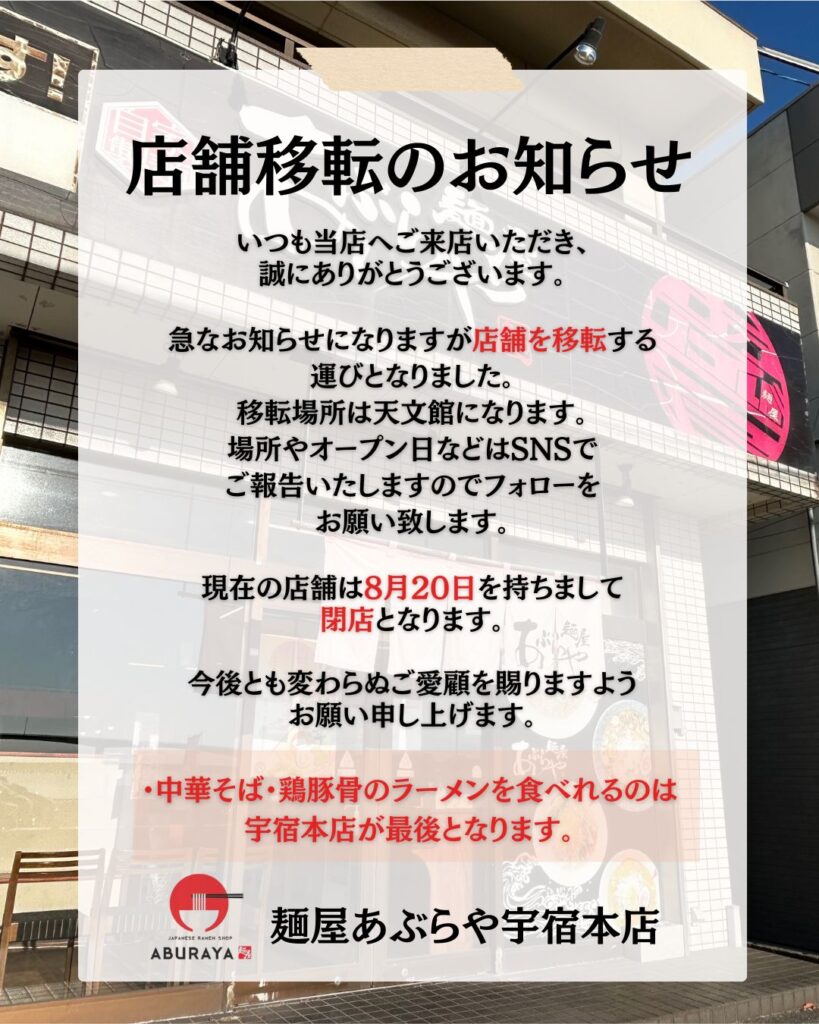 現在の店舗での営業は8月20日が最終日となります。